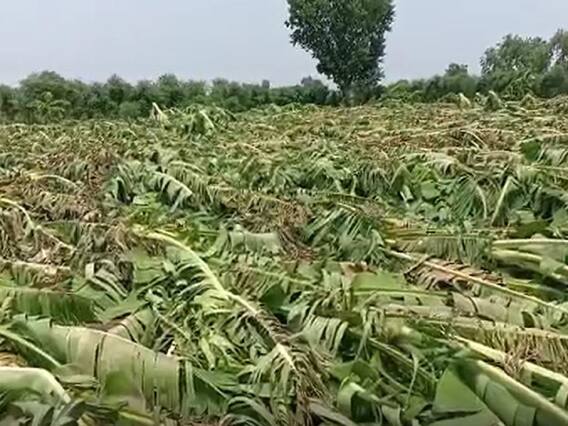 जळगाव जिल्ह्यात अमळनेर तालुक्यात काही भागात झालेल्या वादळी वारा आणि गारपिटीनं पंधरा घरांच्या भिंती कोसळल्या आहेत. तर पन्नासहून अधिक शेतकऱ्यांच्या शेतात पाणी घुसून शेतीचं नुकसान झालं आहे. जळगाव जिल्ह्यात अनेक भागात पहिल्याच पावसानं केळी पिकासह अनेक घराचं नुकसान झालं आहे. मागील दोन ते तीन दिवसात रावेर, चाळीसगाव , भडगाव, चोपडा आणि अमळनेर या तालुक्यात जोरदार वादळी वारा आणि पाऊस झाल्यानं कोट्यवधी रुपयांच्या केळी पिकांसह अनेक घरांचं नुकसान झालं आहे.