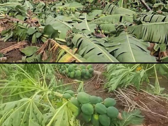 नंदुरबार जिल्ह्यात अवकाळी पावसाचा धुमाकूळ सुरू आहे. अवकाळी पाऊस आणि वादळी वाऱ्यांमुळे शेतीचं प्रचंड नुकसान झालं आहे. काढणीसाठी आलेली पपई, केळी जमीनदोस्त झाली आहेत. तर, कापूस, मिरची, कापणी केलेला भात आणि गुरांसाठी असलेला चारा सारकही अवकाळीमुळे हातातून गेलं आहे. यामुळे सरकारने पंचनामे न करता सरसकट मदत द्यावी, अशी मागणी शेतकऱ्यांनी केली आहे.