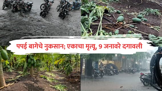 लातूर जिल्ह्यातील निलंगा तालुक्यातील मुगाव, हनुमंतवाडी या गावत ग्रुप शेती केली जाते. ग्रुप शेतीच्या माध्यमातून 12 एकरच्या आसपास पपई ची लागवड करण्यात आली होती. वीस दिवसांपूर्वी पाण्याच्या कमतरतेमुळे टँकरद्वारे पपईच्या बागेला पाणी देण्यात येत होतं. मात्र मागील चार दिवसापासून या भागातील चित्र बदलून गेला आहे... चार दिवसापासून जोरदार वारं ढगांचा गडगडात वीज पडून पावसाला सुरुवात झाली आहे. याचा फटका पपईच्या बागेला बसला आहे. पपईची बाग हे एक उदाहरण झालं मात्र या भागातील केळी द्राक्ष आंबा यासारख्या फळबागेला या पावसाचा सर्वाधिक फटका बसला आहे.