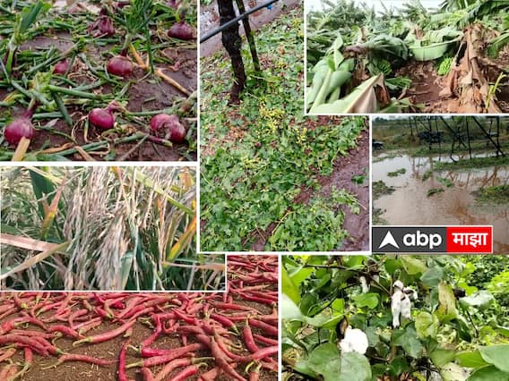 मुंबई : अवकाळीच्या संकटामुळे (Unseasonal Rain) शेतकऱ्यांच्या अश्रूंचा बांध पुन्हा फुटला आहे. पुन्हा एकदा अवकाळीनं अनेक भागांत अवकृपा केली आहे. रात्री झालेल्या पावसामुळे राज्यातील अनेक जिल्ह्यांमधील पिके जमीनदोस्त झाली. पुणे, अहमदनगर, नंदुरबार, वाशिम, नाशिक, नांदेड जिल्ह्यात अवकाळी पावसामुळं मोठं नुकसान केलं आहे. दरम्यान, पुण्यातल्या आंबेगावात गारपिटीचा (Hail Storm) जोरदार तडाखा बसला आहे. कांदा आणि बटाटा पिकांचं मोठं नुकसान झाले आहे. तर निफाडमध्येही गारपिटीनं झोडपलं, द्राक्ष पिकांना मोठा फटका बसला आहे. हवामान विभागानं (Indian Meteorological Department) दिलेल्या अंदाजानुसार आजही राज्यात अवकाळी पावसाचा अंदाज वर्तवण्यात आला आहे. आज राज्यात अनेक ठिकाणी विजांच्या कडकडाटासह पावसाचा अंदाज आहे.