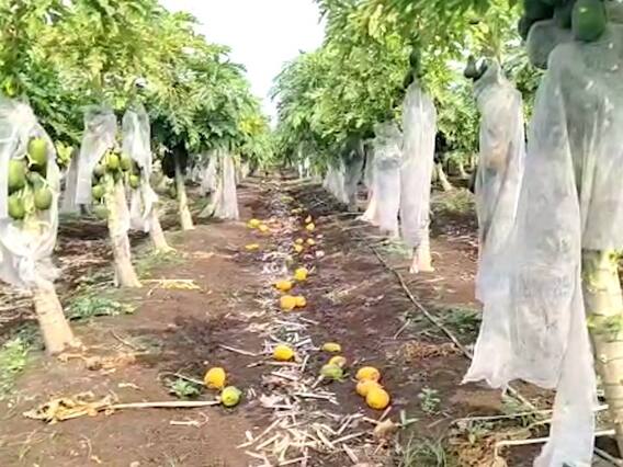 जिल्ह्यात पपईच्या बागा बहरल्या आहेत. फळे खराब होऊ नये म्हणून कटिंग बॅग लावण्यात आल्या आहेत. सर्व काळजी घेऊन पपई आता तोडणीसाठी तयार झाली आहे. परंतु, पपई खरेदीसाठी व्यापारी येत नाहीत. शेतकरी तीन रुपये प्रति किलो दराने पपई द्यायला तयार असले तरी खरेदीसाठी कोणी नसल्याने पपईची फळे झाडावरच पिकत आहेत. त्यामुळे शेतकऱ्यांचे मोठे नुकसान होत आहे.