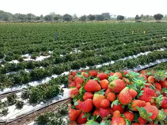 खटाव : सातारा जिल्ह्यातील माण-खटाव तालुका म्हणजे कायमच दुष्काळाने ग्रासलेला. या पट्ट्यात शेती ही राम भरोसेच असते. कारण शेतकऱ्यांच्या पिकांवर निसर्ग अक्षरशः पाणीच फेरतो. एकतर पावसाचं प्रमाण अगदीच नगण्य, झालाच तर धो-धो बरसतो, तो ही जेंव्हा अपेक्षित असतो तेंव्हा अवकृपा दाखवतो. अशा अनेक समस्या झेलताना पदरी मात्र निराशाच येते. पिकासाठी खर्ची घातलेला पैसा हाती येण्याची ही शाश्वती नसते. मग अशा दुष्काळात स्ट्रॉबेरी बहरली, असं म्हटलं तर तुमचा विश्वास बसेल का? नाही ना? आमचा ही विश्वास बसत नव्हता, म्हणूनच आम्ही साताऱ्याच्या दुष्काळी खटाव तालुक्यातील 'त्या' शेताच्या बांधावर पोहचलो. अन पाहतो तर काय.... साक्षात या दुष्काळी जमिनीवर स्ट्रॉबेरी पिकलेली होती. साताऱ्याच्या खटाव मधील सचिन कोचरेकर आणि प्रशांत भोसले या प्रयोगशील शेतकऱ्यांनी ही किमया साधलीये.