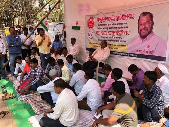Raju shetti Agitation : शेतकऱ्यांना शेतीसाठी दिवसा वीज मिळावी यासाठी स्वाभिमानी शेतकरी संघटना आक्रमक झाली आहे. गेल्या चार दिवसापासून या मागणीसाठी स्वाभिमानी शेतकरी संघटनेच्या वतीने कोल्हापूरमधील महावितरण कार्यालयासमोर बेमुदत धरणे आंदोलन सुरु आहे. 22 फेब्रुवारीपासून या आंदोलनाला सुरूवात झाली आहे. अद्याप महावितरण किंवा सरकारच्या वतीने कोणतेही आश्वासन दिलेले नाही. त्यामुळे आंदोलन सुरुच आहे. स्वाभिमानी शेतकरी संघटनेचे प्रमुख राजू शेट्टी यांच्या नेतृत्वात हे आंदोलन सुरू आहे.