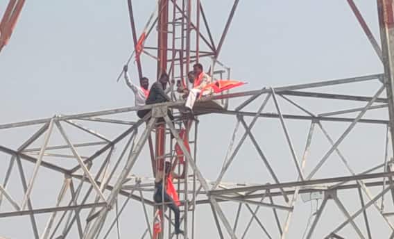 लातूर : सध्या राज्यातील सोयाबीन (Soybean) उत्पादक शेतकरी चिंतेत आहेत. कारण सरकारी सोयाबीन खरेदीची मुदत संपली आहे. मात्र, राज्यातील अनेक शेतकऱ्यांच्या सोयाबीनची खरेदी बाकी आहे. त्यामुळं राहिलेल्या सोयाबीनचे करायचे काय? असा सवाल उपस्थित केला जात आहे. दरम्यान, सोयाबीन खरेदी केंद्र सरु करावीत, या मागणीसाठी लातूरमध्ये (Latur) शिवसेना ठाकरे गट (Shivsena Thackeray Group) आक्रमक झाला आहे. लातूरच्या निलंगा शहरात शिवसेना ठाकरे गटाच्या कार्यकर्त्यांनी टॉवरवर चढत शोले स्टाईल आंदोलन केले आहे.