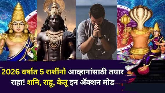 2026 Horoscope: 2026 चे नवीन वर्ष जसजसे जवळ येत आहे, तसतसे अनेकांची उत्सुकता देखील वाढत आहे. नवीन वर्ष आपल्यासाठी कसं जाणार? या वर्षात कोण होणार मालामाल? कोणाला आव्हानांचा सामना करावा लागणार? यासारखे अनेक प्रश्न प्रत्येकाच्या मनात असतात. ज्योतिषशास्त्रानुसार (Astrology) पाहायला गेलं तर 2026 (2026 New Year) हे वर्ष अनेकांसाठी गेमचेंजर ठरणार आहे. या वर्षात काही ग्रहांचे संक्रमण देखील होत आहे, जे प्रत्येकाच्या जीवनावर परिणाम करतील. विशेषतः, शनि (Shani), राहू (Rahu) आणि केतूचे (Ketu) संक्रमण या वर्षातील प्रमुख ज्योतिषीय घटना असतील. 2026 मध्ये या ग्रह संक्रमणांमुळे कोणत्या 5 राशींना अडचणी येऊ शकतात? जाणून घेऊया.