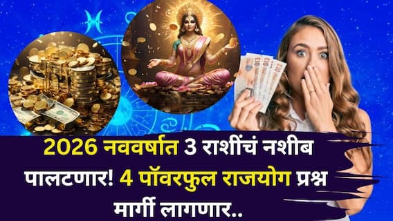 2026 Year Astrology: माणसाची मेहनत आणि त्यासोबत नशीबाची साथ मिळाली की त्याचे संपूर्ण आयुष्य पालटून जाते. आता 2025 वर्ष लवकरच संपणार आहे, 2026 हे वर्ष लवकरच सुरू होणार आहे. 2026 (2026 New Year) हे वर्ष कसं जाणार? याची अनेकांना उत्सुकता असते. वैदिक ज्योतिषशास्त्रानुसार (Astrology), 2026 ची सुरुवात अत्यंत शुभ ठरणार आहे. या काळात अनेक प्रमुख ग्रहांचे संक्रमण चार महत्त्वाचे राजयोग निर्माण करेल. हे राजयोग (Rajyog 2025) तीन राशींसाठी अत्यंत शुभ आणि फायदेशीर ठरतील. त्यांच्या शुभ प्रभावामुळे प्रचंड संपत्ती आणि समृद्धी येईल.