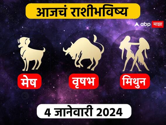 Horoscope Today 4 January 2024 : राशीभविष्यानुसार, आज म्हणजेच, 4 जानेवारी 2024 रोजी गुरुवार हा महत्त्वाचा दिवस आहे. ग्रहांच्या चालीनुसार, मेष राशीच्या लोकांची आर्थिक स्थिती आज सुधारू शकते. वृषभ राशीच्या लोकांना जोडीदाराकडून पूर्ण सहकार्य मिळेल. तर मिथुन राशीचा आजचा दिवसही चांगला जाईल. मेष, वृषभ, मिथुन राशीच्या लोकांसाठी आज दिवस कसा राहील? आजचे राशीभविष्य जाणून घ्या.