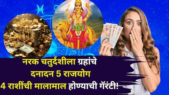 Diwali 2025 Rajyog: धनत्रयोदशीपासून (Dhanteras 2025) अखेर दिवाळीला (Diwali 2025) सुरूवात झाली आहे. धनत्रयोदशीनंतर सोमवारी 20 ऑक्टोबरच्या दिवशी नरक चतुर्दशीचा (Narak Chaturdashi 2025) दिवस आहे. अशात दिवाळीत देवी लक्ष्मीला प्रसन्न करण्यासाठी लोक विविध उपाय करत आहेत, मात्र यंदा 4 राशी अशा आहेत, ज्यांवर देवी लक्ष्मीचा आशीर्वाद आपोआप मिळणार आहे. दिवाळीत कोणत्या भाग्यवान राशींना मोठा फायदा होऊ शकतो? जाणून घ्या. नरक चतुर्दशीला निर्माण होणाऱ्या 5 राजयोगामुळे कोणत्या भाग्यवान राशींना मोठा फायदा होऊ शकतो? जाणून घ्या.
