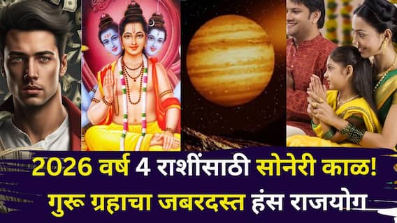 Guru Transit 2026: 2026 हे वर्ष (2026 New Year) लवकरच सुरू होणार आहे. येणारं नववर्ष हे कसं असेल? याची उत्सुकता प्रत्येकालाच आहे. ज्योतिषशास्त्रानुसार (Astrology) पाहायला गेलं तर येणार वर्ष हे अनेकांसाठी अत्यंत उत्तम असेल, काही राशी अशा असतील, ज्यांच्यासाठी हे वर्ष एखाद्या सोनेरी काळापेक्षा कमी नसेल, याचं कारण म्हणजे या वर्षात अनेक मोठ्या ग्रहांचे संक्रमण होत आहे. ज्याचा सकारात्मक किंवा नकारात्मक परिणाम होणार आहे. 2026 मध्ये, गुरु कर्क राशीत प्रवेश करेल, ज्यामुळे हंस महापुरुष आणि केंद्र त्रिकोण राजयोग निर्माण होईल. ज्योतिषींच्या मते, 2026 हे वर्ष 4 राशींसाठी हा सुवर्णकाळ असेल. ज्योतिषशास्त्रानुसार, जाणून घेऊया की या भाग्यवान राशी कोणत्या आहेत?