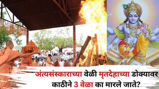 Hindu Religion: जो या पृथ्वीतलावर जन्म घेतो, त्याचा मृत्यूही अटळ आहे. भगवान श्रीकृष्णांनी गीतेत सांगितलेले हे ज्ञान सर्वांनाच माहित आहे. तर गरुडपुराणात म्हटल्याप्रमाणे व्यक्ती हयात असताना तसेच त्याच्या मृत्यूनंतरही त्याला त्याच्या कर्माचे फळ हे भोगावे लागते, म्हणूनच म्हणतात ना, माणसाने नेहमी चांगले कर्म करावे. व्यक्तीचा जेव्हा मृत्यू होतो, तेव्हा त्याच्यावर अंत्यसंस्कार केले जातात. यात अनेक विधी केल्या जातात. पण तुम्हाला माहित आहे का? अंत्यसंस्कार करताना मृतदेहाच्या डोक्यावर तीन वेळा मारले जाते. हिंदू धर्मात तसेच शास्त्रात याबद्दल काय म्हटलंय? असे का करतात? जाणून घेऊया...
