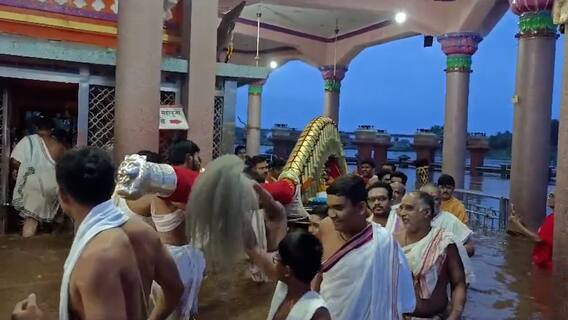 मागील आठवड्याभरापासून कोल्हापूर शहरासह जिल्ह्यात मुसळधार पाऊस सुरु आहे. या पावसामुळे पंचगंगा आणि कृष्णा नदीच्या पाणी पातळीत झपाट्याने वाढ होत असून अनेक ठिकाणी पंचगंगा पात्राबाहेर वाहत आहे. शिरोळ तालुक्यातील श्रीक्षेत्र नृसिंहवाडीमध्ये पंचगंगा आणि कृष्णा नदीचा संगम होतो. यामुळे दरवर्षी पाणी वाढलं की नदीचं पाणी येथील श्रीक्षेत्र दत्त मंदिरात शिरत असतं. यंदा 16 जुलै रोजी पहाटे 4 वाजता नदीचं पाणी दत्त मंदिरात आलं आहे. यामुळे यावर्षीचा पहिला दक्षिणद्वार सोहळा पहाटेच्या सुमारास मोठ्या उत्साहात पार पडला.