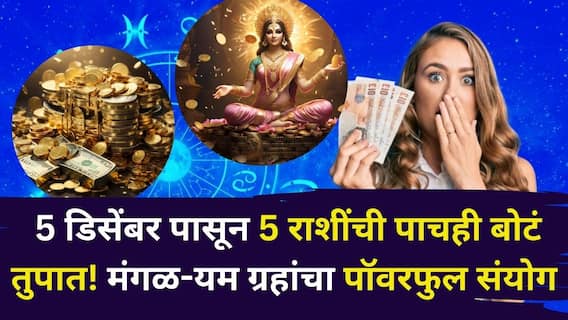 Lucky Zodiac Signs: प्रत्येकाच्या नशीबी कधी ना कधी तरी भाग्योदय हा ठरलेलाच असतो. फक्त ज्याला त्याला त्याच्या कर्मानुसार तसेच वेळेनुसार मिळतो. ज्योतिषशास्त्रानुसार पाहायला गेलं तर, प्रत्येक ग्रहाची हालचाल आणि इतर ग्रहांचे संबंध व्यक्तीच्या नशिबावर, विचारांवर आणि कृतींवर परिणाम करतात. संक्रमणादरम्यान, ग्रह विविध प्रकारचे योग, युती, आणि एकमेकांशी संयोग तयार करतात. यापैकी काही योग, युती शुभ असतात, तर काही अशुभ असतात, ज्यांचा राशी आणि व्यक्तीच्या जीवनावर खोलवर परिणाम होतो असे मानले जाते. 4 डिसेंबर 2025 पासून मंगळ आणि यम चत्वारिष्ठ योग निर्माण केला, ज्याला चालीसा योग असेही म्हणतात, या योगाच्या सक्रियतेमुळे 5 डिसेंबरपासून पाच राशींना मोठा फायदा होईल. ज्योतिषी यांच्याकडून जाणून घेऊया की कोणत्या राशींचे भाग्य बदलण्याची शक्यता आहे.
