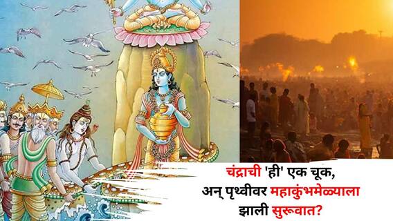 Maha Kumbh 2025: हिंदू धर्मानुसार, 2025 हे वर्ष अत्यंत महत्त्वाचे ठरणार आहे. कारण याच वर्षी महाकुंभाचे आयोजन केले जात आहे. धार्मिक आणि आध्यात्मिक दृष्टिकोनातून महाकुंभाला विशेष महत्त्व आहे. 2025 मध्ये 13 जानेवारीपासून महाकुंभ मेळा सुरू होणार असून तो 26 फेब्रुवारीपर्यंत चालणार आहे. महाकुंभात त्रिवेणीच्या तीरावर म्हणजेच गंगा, यमुना आणि सरस्वतीच्या संगमावर स्नान केले जाते. धार्मिक मान्यतेनुसार, महाकुंभात गंगा स्नान केल्याने अश्वमेध यज्ञाप्रमाणेच फळ मिळते. महाकुंभ मेळा विशेष योग आणि ग्रहाच्या स्थितीनुसार भरतो. असे म्हणतात कुंभात स्नान केल्याने तुमचा आध्यात्मिक विकास होण्यास मदत होते आणि तुमची पापेही धुतली जातात. मात्र, फार कमी लोकांना माहीत असेल की, चंद्र देवाच्या एका चुकीमुळे आज पृथ्वीवर कुंभमेळा भरतो. दुसऱ्या शब्दांत, चंद्र देवाची चूक पृथ्वीवरील लोकांसाठी वरदान ठरली. चंद्राशी संबंधित महाकुंभाची ही रंजक कहाणी येथे जाणून घेऊया.