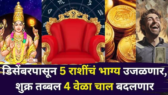 Shukra Transit 2025: 2025 वर्षातील शेवटचा महिना डिसेंबर (December 2025) महिना अवघ्या काही दिवसांतच सुरू होतोय. हा महिना ज्योतिषशास्त्राच्या (Astrology) दृष्टीने अत्यंत खास आहे. ज्योतिषशास्त्रात शुक्र हा एक अत्यंत शुभ ग्रह मानला जातो. जो डिसेंबर 2025 मध्ये तब्बल चार वेळा आपली स्थिती बदलेल, ज्याचा सर्व राशींवर खोलवर परिणाम होईल. यामुळे पाच राशींच्या लोकांचे भाग्य उजळू शकते. ज्योतिषशास्त्रानुसार, जाणून घेऊया की या भाग्यवान राशी कोणत्या आहेत आणि हे बदल त्यांच्या जीवनावर कसा परिणाम करतील?