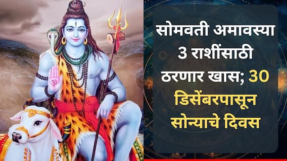 Astrology 30 December 2024 : वर्षातील शेवटची अमावस्या (Somvati Amavasya 2024) आज, म्हणजेच 30 डिसेंबर रोजी आहे. याच दिवशी अनेक ग्रहांच्या देखील चाली बदलत आहेत. प्रेम, आनंद, समृद्धी, सौभाग्य आणि संपत्तीचा कारक मानल्या जाणाऱ्या शुक्र ग्रहाने नुकताच कुंभ राशीत प्रवेश केला आहे. अशा स्थितीत शुक्राच्या राशी बदलामुळे 3 राशींना बंपर लाभ मिळू शकतो. या राशींसाठी 30 डिसेंबरपासूनचा काळ आणि नवीन वर्ष लाभदायी ठरू शकतं, या भाग्यवान राशी नेमक्या कोणत्या? जाणून घेऊया.