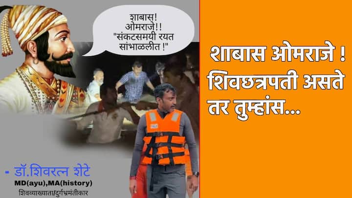 अनेक आमदार, खासदार, मंत्री सुद्धा मदत करत असतात, तर काही फक्त फोटोसेशन पुरतेही प्रकटतात. तुम्ही तर रौद्ररूप धारण केलेल्या नद्यांच्या प्रलंयकारी प्रवाहात, राष्ट्रीय आपत्ती निवारण दलाच्या (NDRF) जवानांच्यासोबत छातीएवढ्या पाण्यात, रयतेस वाचविण्यासाठी शिकस्त करताना उभ्या देशाने बघितले, ओमराजे हे सोपं नाही. बिळांमध्ये पाणी गेल्यामुळे खवळलेले विषारी साप व मगरीसुद्धा प्रवाहात असतात, ओमराजे ! असहाय्य रयतेस वाचविताना आपल्या पायास साप चावला किंवा मगरीने चावा घेतला तर? किंवा रौद्र प्रवाहात भले भले पट्टीचे पोहणारे सुद्धा गाळात फसून, भोवर्यात बुडुन मेल्याचे कैक उदाहरणे असताना क्षणभर तुम्हांस, तुमच्या मातोश्री आनंदीदेवी, अर्धांगिनी संयोजिनी, बंधू जयराजे, पुत्र रघुवीर तथा पुत्री गायत्री, याद आले नसतील का? याद आले असतीलच. परंतु, त्याहीपेक्षा निवडणुकीवेळी तुम्ही रयतेला दिलेला शब्द तुम्हास याद आला की, "मी तुमचा मुलगा...भाऊ आहे, कुटुंबीय आहे. रयतेच्या पायात काटा मोडला तर तुमच्या डोळ्यात पाणी यावं, रयतेशी एवढा कुटुंबवत एकरूप जाहलेला मऱ्हाठी भूमीवरील लोकप्रतिनिधी देखोन आम्ही बहुत संतुष्ट जाहलो.