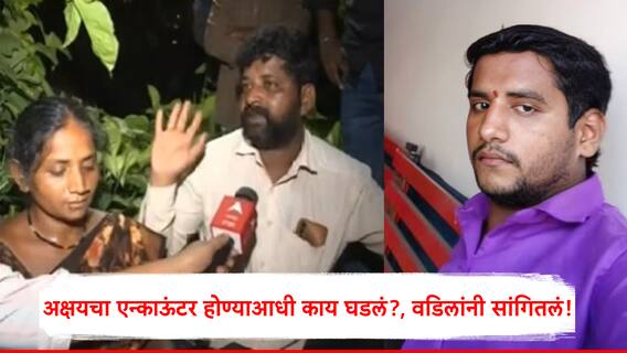 अक्षय शिंदे (Akshay Shinde) याचे आई-वडील सोमवारी दुपारीच त्याला तळोजा कारागृहात जाऊन भेटून आले होते. ते पावणेचारच्या सुमारास तुरुंगातून बाहेर पडले. त्यानंतर पोलिसांनी एका प्रकरणाच्या चौकशीसाठी अक्षय शिंदे याला बदलापूरला नेले. यानंतर अक्षयच्या एन्काऊंटरची माहिती वृत्तवाहिन्यांवरील बातम्यांमधून समजल्याची माहिती अक्षयच्या चुलत्यांनी दिली, असं अण्णा शिंदे (अक्षयचे वडील) यांनी सांगितले.