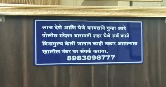 दरम्यान, या घटनेनंतर बारामतीत एकच चर्चा सुरू झाली आहे. काही महिन्यांपूर्वी येथील पोलिस निरीक्षक नामदेव शिंदे यांनी ‘आमच्याकडे कोणत्याही कामासाठी पैसे घेतले जात नाहीत’ अशा आशयाचा फलक लावला होता. त्यातून त्यांनी पारदर्शक कारभार केला जात असल्याचे दर्शवले होते. त्यानंतर काही दिवसांतच हा फलक काढण्यात आला. आज झालेल्या कारवाईमुळे प्रत्यक्षात उलटेच घडत असल्याचे स्पष्ट झाले आहे.