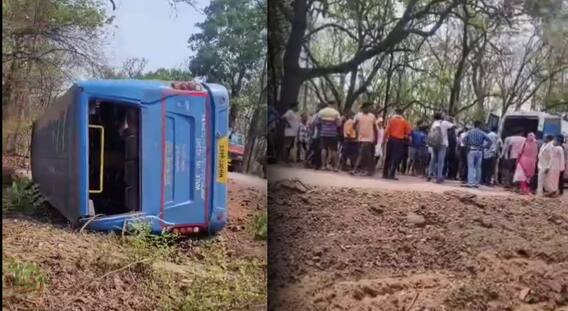 रस्त्यातील खड्याचा अंदाज न आल्याने बस पलटली