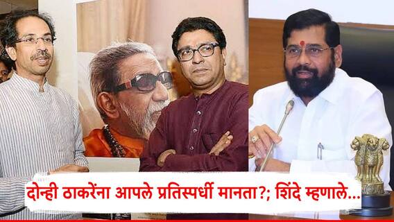 राज ठाकरे यांनी महायुतीच्या उमेदवारांच्या प्रचारासाठी मुंबई, ठाणे, पुणे व कोकणात जाहीर प्रचारसभा देखील घेतल्या होत्या. त्यानंतर मनसे महाराष्ट्राच्या विधानसभा निवडणुकीत (Maharashtra Vidhan Sabha Election 2024) महायुतीत सहभागी होईल अशी चर्चा रंगू लागली होती. तसेच राज ठाकरे यांच्या मुख्यमंत्री एकनाथ शिंदे (Eknath Shinde), उपमुख्यमंत्री व भाजपाचे महाराष्ट्रातील प्रमुख नेते देवेंद्र फडणवीस (Devendra Fadnavis) यांच्याशी गाठीभेटी होऊ लागल्या होत्या. त्यामुळे विधानसभा निवडणुकीत मनसे महायुतीत सहभागी होईल असा अंदाज व्यक्त करण्यात येत होता. परंतु मनसेची भाजप, शिवसेना शिंदे गट आणि अजित पवारांच्या राष्ट्रवादीसोबत युती होऊ शकली नाही. मनसेने विधानसभा निवडणुकीत ‘एकला चलो रे’चा नारा दिला आहे. त्यानंतर राज्यात 150 हून अधिक विधानसभेच्या जागांवर उमेदवार उभे केले. याचदरम्यान 'दैनिक लोकमत'ने घेतलेल्या मुलाखतीमध्ये मुख्यमंत्री एकनाथ शिंदे यांना तुम्ही दोन्ही ठाकरेंना आपले प्रतिस्पर्धी मानता का?, असा प्रश्न विचारण्यात आला. यावर एकनाथ शिंदे नेमकं काय म्हणाले, पाहा...