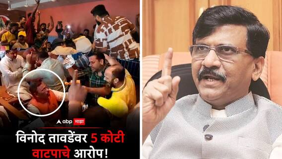 Maharashtra Assembly Election 2024 : वसई विरारमध्ये अभूतपूर्व राडा झाला असून बहुजन विकास आघाडीने भाजप राष्ट्रीय सरचिटणीस विनोद तावडे यांच्यावर पैसे वाटल्याचा आरोप केला आहे. विनोद तावडे यांनी मात्र हे आरोप फेटाळून लावले आहेत. बहुजन विकास आघाडीच्या कार्यकर्त्यांनी विनोद तावडे यांना घेरलं आहे. गेल्या अडीच तासांपासून हाॅटेल विवांतमध्ये हा अभूतपूर्व राडा सुरु आहे. दरम्यान, विनोद तावडे यांच्याकडे पाच कोटी असल्याचा आरोप करण्यात येत आहे, तर त्यांच्या डायरीत 15 कोटींची नोंद असल्याचाही आरोप होत आहे. विनोद तावडे बहुजन विकास आघाडीच्या कार्यकर्त्यांच्या गराड्यात सापडल्यानंतर त्यांनी आरोप फेटाळले आहेत. दरम्यान, शिवसेना खासदार संजय राऊत यांनी ट्विट करत हल्लाबोल केला आहे.