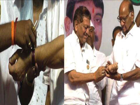 राष्ट्रवादीच्या उमेदवाराच्या एका हातात शिवबंधन तर दुसऱ्या हातात घड्याळ, मतदारसंघात जोरदार चर्चा