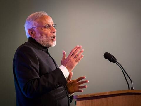 LONDON, ENGLAND - NOVEMBER 12: Indian Prime Minister Narendra Modi addresses industry leaders at Guildhall on November 12, 2015 in London, England. Modi began a three-day visit to the United Kingdom today which was marked by a speech to Parliament, a meeting with the Queen and an address to crowds at Wembley Stadium. (Photo by Rob Stothard - WPA Pool/Getty Images)