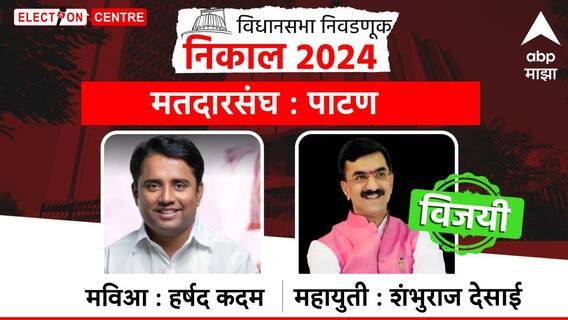 सातारा : पाटण विधानसभा मतदारसंघात एकनाथ शिंदे यांच्या शिवसेनेचे शंभूराज देसाई, शिवसेना उद्धव बाळासाहेब ठाकरे या पक्षाचे उमेदवार हर्षद कदम, अपक्ष उमेदवार सत्यजितसिंह पाटणकर यांच्यात लढत झाली.हर्षद कदम ठाकरेंच्या शिवसेनेचे उमेदवार असले तरी प्रामुख्यानं लढत शंभूराज देसाई विरुद्ध सत्यजितसिंह पाटणकर अशी झाली. या लढतीत शंभूराज देसाई यांनी विजय मिळवला.शंभूराज देसाई यांना 125759 मतं मिळाली. तर, सत्यजितसिंह पाटणकर यांना 90935 मतं मिळाली. हर्षद कदम यांना 9626 मतं मिळाली. तर,शंभूराज देसाई यांनी सत्यजितसिंह पाटणकर यांचा 34824 मतांनी पराभव केला.