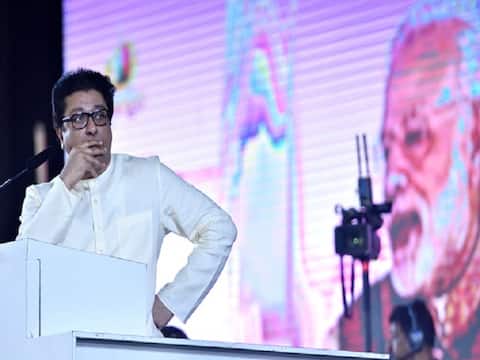 MUMBAI, INDIA - APRIL 23: MNS chief Raj Thackeray addresses during a public rally at Shahid Bhagat Singh, Kalachowk, on April 23, 2019 in Mumbai, India. (Photo by Anshuman Poyrekar/Hindustan Times via Getty Images)