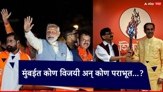 मुंबई: लोकसभा निवडणूक 2024 च्या (Maharashtra Lok Sabha Result 2024) निवडणूकीत मुंबईत महाविकास आघाडी वरचढ ठरली आहे. मुंबईतील 6 जागांपौकी 4 जागांवर महाविकास आघाडीने विजय मिळवला आहे. तर दोन जागेवर महायुतीचा विजय झाला आहे. उत्तर मुंबई भाजपचे उमेदवार पियुष गोयल आणि वायव्य मुंबईत शिवसेना शिंदे गटाचे उमेदवार रवींद्र वायकर यांचा विजय झाला आहे. तर दक्षिण मुंबई, दक्षिण मध्य मुंबई, उत्तर मध्य मुंबई, ईशान्य मुंबईत महाविकास आघाडीचा विजय झाला आहे.
