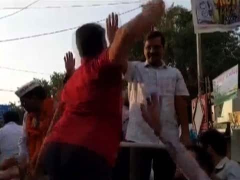 मुख्यमंत्री अरविंद केजरीवाल यांना रोड शो दरम्यान कानशिलात लगावली, युवकाला आप कार्यकर्त्यांनी धुतले