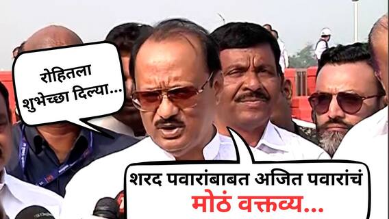 Ajit Pawar meet Rohit Pawar : पुणे : राज्यात विधासभा निवडणुकांचे निकाल (Vidhan Sabha Election Result 2024) जाहीर झाले असून यंदा जनतेनं सत्तेच्या चाव्या एकहाती महाविकास आघाडीकडे (Maha Vikas Aaghadi) सोपवल्या आहेत. अशातच लोकसभेत पराभवाची चव चाखलेल्या दादांनी विधानसभेत मात्र, काकांना पछाडलं. दादांच्या राष्ट्रवादीनं यंदाच्या निवडणुकीत 41 आमदार निवडून आणले. अशातच घवघवीत यशानंतर आज यशवंतराव चव्हाणांच्या पुण्यतिथीनिमित्त अजित पवार स्मृतीस्थळावर अभिवादन करण्यासाठी उपस्थित राहिले. त्यावेळी अजितदादा आणि रोहित पवारांची भेट झाली. दोघांमधील संवादही चर्चेचा विषय ठरला. एवढंच काय, रोहित पवारांना दादांनी आग्रह करत खाली वाकून नमस्कार करायला लावला. त्यानंतर अजितदादांनी माध्यमांना प्रतिक्रिया दिली. त्यावेळी रोहित पवारांसोबतच्या भेटीबाबत बोलताना अजित पवारांनी शरद पवारांचाही उल्लेख केला.