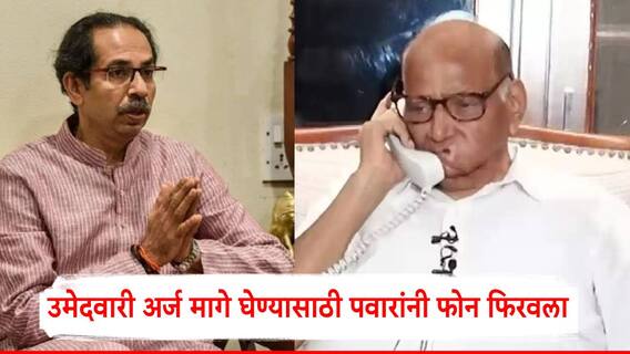 Maharashtra Vidhan Sabha Election 2024: राज्यात विधानसभा निवडणुकीसाठी (Maharashtra Vidhan Sabha Election 2024) 20 नोव्हेंबर रोजी मतदान होणार आहे. तर 23 नोव्हेंबर रोजी मतमोजणी पार पडणार आहे. निवडणुकीच्या पार्श्वभूमीवर सर्वंच राजकीय पक्ष तयारीला लागले आहेत. आज उमेदवारी अर्ज मागे घेण्याचा शेवटचा दिवस आहे. त्यामुळे बंडखोरी करणाऱ्यांना रोखण्यासाठी महायुती आणि महाविकास आघाडीकडून मोठ्या प्रमाणात प्रयत्न करण्यात येत आहे. याचदरम्यान एक महत्वाची माहिती समोर आली आहे. शरद पवार यांनी फोन करत बंडोखोर उमेदवारांना आपला उमेदवारी अर्ज मागे घेण्याच्या सूचना दिल्या आहेत. राष्ट्रवादी काँग्रेस शरद पवार गटातील बंडखोर उमेदवार देखील आपला उमेदवारी अर्ज मागे घेणार आहे. शरद पवारांनी फोन करत बंडखोर उमेदवारांना सूचना दिल्या.