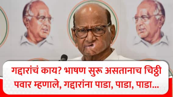 सातारा : गेल्या काही दिवसांपासून शरद पवारांनी त्यांना सोडून गेलेल्या सहकाऱ्यांबद्दल कडक भूमिका घेतल्याचं दिसतंय. वळसे पाटलांना गद्दार म्हणून त्यांना पाडण्याचं आवाहन केल्यानंतर आता इतर ठिकाणीही तशीच भूमिका घेतली जात आहे. वाईतल्या भर सभेत शरद पवारांना चिठ्ठी आली आणि गद्दारांचं काय अशी विचारणा झाली. ती चिठ्ठी दाखवत शरद पवार म्हणाले, गद्दारांना पाडा, पाडा पाडा. त्यामुळे राष्ट्रवादी शरद पवार गटाच्या कार्यकर्त्यांनी एकच जल्लोष केला.