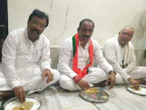 अक्कलकोटमध्ये प्रतिस्पर्धी उमेदवारांचा मांडीला मांडी लावून भोजनावर ताव