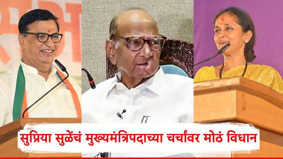 Supriya Sule Maharashtra Vidhan Sabha Election 2024: विधानसभा निवडणुकांच्या (Maharashtra Vidhan Sabha Election 2024) प्रचाराचे अवघे काही तास शिल्लक असताना राष्ट्रवादी शरदचंद्र पवार गटाच्या अध्यक्ष सुप्रिया सुळे (Supriya Sule) यांनी काल संगमनेरमध्ये जाहीर सभेला हजेरी लावली. काँग्रेस नेते बाळासाहेब थोरात (Balasaheb Thorat) यांच्या प्रचारार्थ आयोजित सभेत सुप्रिया सुळे यांच्यासह अनेक पदाधिकारी उपस्थित होते. काही दिवसांपूर्वी शरद पवार (Sharad Pawar) यांनी शिर्डी येथे झालेल्या सभेत बाळासाहेब थोरात यांच्याकडे नेतृत्व देण्याचं वक्तव्य केलं होतं. त्यापाठोपाठ आज सुप्रिया सुळे यांनी देखील संगमनेर तालुक्यातील जनतेला संबोधित करताना तुमच्या मनात जे स्वप्न आहे ते पूर्ण व्हावं...अशी माझी देखील इच्छा, असं वक्तव्य केल्याने बाळासाहेब थोरात यांच्या मुख्यमंत्रिपदाच्या चर्चेला सुरुवात झाली आहे.