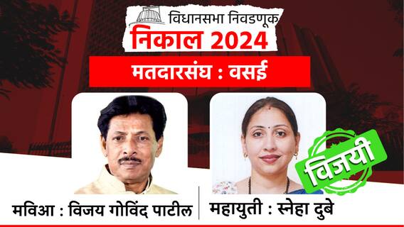 Vasai Vidhan Sabha Constituency Election 2024 : वसई विधानसभा मतदारसंघात यंदाच्या सार्वत्रिक निवडणुकीत काँग्रेस विरुद्ध भाजप लढत पाहायला मिळाली. वसई विधानसभेत भाजपच्या स्नेहा दुबे विजयी झाल्या आहे. वसईमध्ये बहुजन वंचित आघाडीचे उमेदवार हितेंद्र ठाकूर, महायुतीकडून भाजपच्या उमेदवार स्नेहा दुबे आणि महाविकास आघाडीकडून काँग्रेसचे उमेदवार विजय पाटील यांच्यात 'काँटे की टक्कर' झाली. काँग्रेसचा तीव्र विरोध करणारी शिवसेना आता दोन गटांत विभागली आहे, त्यामुळे यातील एक गट भाजपसोबत आणि दुसरा गट काँग्रेससोबत असल्याचं चित्र या निवडणुकीत पाहायला मिळत आहे. तसेच, राष्ट्रवादी काँग्रेस पक्ष ही विभागला गेल्याने हा मतदारवर्गही विभागला आहे. ही परिस्थितीत हितेंद्र ठाकूर यांच्यासाठी सुगीची मानली जात होती. पण, या निवडणुकीत मतदारराजाने भाकरी फिरवत हितेंद्र ठाकूर यांना पराभवाचा मोठा धक्का दिला.