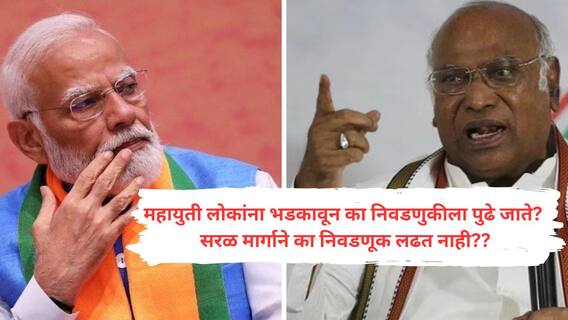 Mallikarjun Kharge on PM Modi : महायुती सरकार विचारधारेसाठी सत्तेत आलं नाही, तर आमदार चोरून सत्तेत आली. महायुती लोकांना भडकावून का निवडणुकीला पुढे जाते? सरळ मार्गाने का निवडणुका लढत नाही? एक है सेफ है की बटेंगे तो कटेंगे यापैकी मोदींची लाईन मानायची की योगींची मानायची? असा सवाल करत काँग्रेस अध्यक्ष मल्लिकार्जुन खरगे यांनी महायुतीसह पीएम मोदी यांच्यावर घणाघाती प्रहार केला. मोदी खोटं बोलणाऱ्यांचे सरदार असल्याची टीका सुद्धा खरगे यांनी केली. बटेंगे तो कटेंगे असं म्हणतात, एक है सेफ है म्हणतात, कुणाला तोडायचं आहे. देशाला एक ठेवण्यासाठी काँग्रेस नेत्यांनी जीवन दिलं आहे. महात्मा गांधींना कोणी मारलं? मारणारे पण तुम्हीच, विभागणारे पण तुम्हीच आहात. खोटं बोला पण रेटून बोला असं मोदी यांचं असल्याची टीका सुद्धा त्यांनी केली.