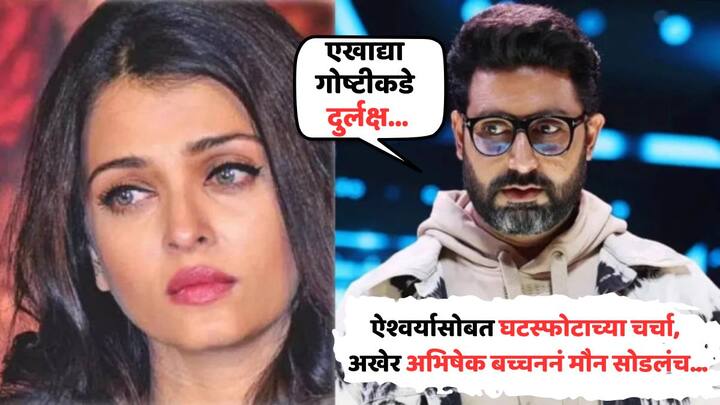 Abhishek Bachchan Broke Silence On Divorce Rumors With Wife Aishwarya Rai: बॉलिवूडच्या (Bollywood) स्टार कपल्सपैकी (Bollywood Star Couple) एक असलेलं, पॉवरफुल कपल म्हणजे, अभिषेक बच्चन (Abhishek Bachchan) आणि ऐश्वर्या राय-बच्चन (Aishwarya Rai Bachchan). पण, गेल्या काही दिवसांपासून बॉलिवूडच्या मोस्ट फेवरेट कपलमध्ये फारसं काही ठीक नसल्याच्या चर्चांना उधाण आलेलं. एवढंच नाहीतर, दोघंही लवकरच घटस्फोट (Abhishek Bachchan Aishwarya Rai Divorce Rumors) घेणार असल्याचंही बोललं जात होतं. गेल्या बऱ्याच काळापासून अभिषेक आणि ऐश्वर्या त्यांच्या प्रोफेशनल लाईफमुळे कमी आणि पर्सनल लाईफमुळे जास्त चर्चेत होते. पण, असं असूनही दोघेही याबाबत कधीचा काहीच बोलले नाहीत. एकीकडे दोघांच्या विभक्त होण्याच्या बातम्या सोशल मीडियावर ट्रेंड होत होत्या. तर, दुसरीकडे हे जोडपं काहीही न बोलता सार्वजनिक ठिकाणी एकत्र येऊन या अफवा खोट्या असल्याचं वारंवार सांगत होते.