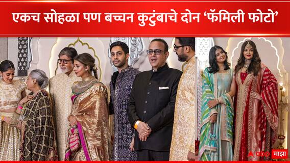 Bachchan Family : अनंत अंबानी (Anant Ambani) आणि राधिका मर्चंट (Radhika Merchant) यांच्या लग्नसोहळ्यासाठी बॉलीवूडमधली अनेक मंडळी ही सहकुटुंब उपस्थित होती. अनेकांनी यावेळी फॅमिली फोटो काढत सोशल मीडियावर चांगलच वातावरण निर्माण केलं. पण एका फॅमिली फोटोची मात्र सोशल मीडियावर बरीच चर्चा सुरु आहे. अमिताभ (Amitabh Bachchan) आणि जया बच्चन (Jaya Bchcha) यांच्या फॅमिली फोटोमुळे पुन्हा एकदा एका वेगळ्याच चर्चांना जोर आलंय.