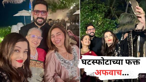 Abhishek Bachchan And Aishwarya Rai Divorce Rumours: सध्या बॉलिवूडचं (Bollywood) सर्वाधिक चर्चेत असणारं कपल ऐश्वर्या राय (Aishwarya Rai Bachchan) आणि अभिषेक बच्चन (Abhishek Bachchan) यांचा घटस्फोट झाल्याच्या चर्चा सुरू आहेत. अशातच सध्या व्हायरल होणारा एक फोटो अफवांचं पेव उठवणाऱ्यांना भारी चपकार म्हणा किंवा आणखी काय? असाच आहे. सध्या सोशल मीडियावर व्हायरल होत असलेला फोटो सर्व अफवांना सडेतोड उत्तर आहे. घटस्फोटाच्या जोरदार अफवांमध्ये ऐश्वर्या राय आणि अभिषेक बच्चन एका पार्टीमध्ये एकत्र दिसून आले. दोघांचा एकत्र फोटो घटस्फोटाच्या सर्व चर्चांचं खंडन करतो. हा फोटो तुम्ही पाहिलाय का?