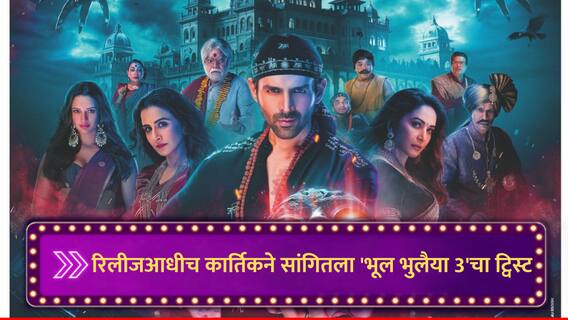 Bhool Bhulaiyya 3 : बहुचर्चित आणि बहुप्रतिक्षित भुल भुलैया 3 चित्रपट लवकरच थिएटरमध्ये दाखल होणार आहे. यामुळे प्रेक्षकांची उत्सुकता शिगेला पोहोचली आहे. कार्तिक आर्यन आणि तृप्ती डिमरीचा आगामी भुल भुलैया 3 चित्रपट दिवाळीमध्ये चित्रपटगृहात दाखल होणार आहे. काही दिवसांपूर्वी चित्रपटाचा ट्रेलर रिलीज झाला असून त्याला प्रेक्षकांचा चांगला प्रतिसाह मिळताना दिसत आहे. चित्रपटातील गाणंही लवकरच रिलीज होणार असून त्याची चाहते आतुरतेने वाट पाहत आहेत. यातच आता चित्रपट रिलीज होण्यापूर्वीच कार्तिक आर्यनने मोठा ट्वीस्ट उघड केला आहे.
