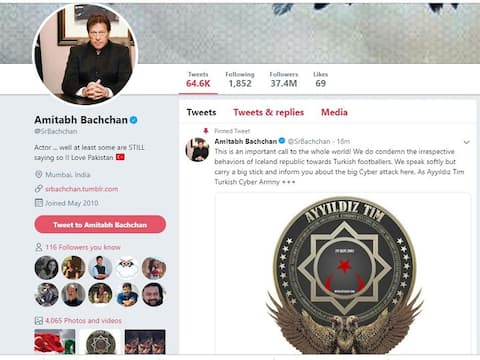 अमिताभ यांच्या फोटोऐवजी पाकिस्तानचे पंतप्रधान इमरान खान यांचा फोटो टाकण्यात आला आहे. तुर्कीश सायबर आर्मीनं अमिताभ यांचं ट्विटर अकाऊंट हॅक केल्याचं समोर आले आहे. तसंच त्यांच्या अकाउंटवरुन लव्ह पाकिस्तान नावानं ट्विट करण्यात आलं आहे.