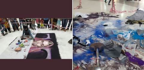 करनी सेनेने ज्या रांगोळीची नासधूस केली, ती रांगोळी काढण्यासाठी 48 तास लागले होते.