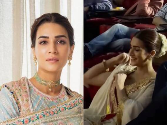 Adipurush Actress Kriti Sanon: 'आदिपुरुष' (Adipurush) हा चित्रपट लवकरच प्रेक्षकांच्या भेटीस येणार आहे. काही दिवसांपूर्वी या चित्रपटाच्या ट्रेलर लाँचचा कार्यक्रम पार पडला. या ट्रेलर लाँच कार्यक्रमाला चित्रपटामधील सर्व स्टार कास्टने हजेरी लावली. ट्रेलर लाँच कार्यक्रमाला प्रेक्षकांनी गर्दी केली होती. यावेळी अभिनेत्री क्रिती सेननला (Kriti Sanon) बसायला जागा मिळत नव्हती. ट्रेलर लाँच कार्यक्रमामधील क्रितीचा एक व्हिडीओ सोशल मीडियावर व्हायरल झाला आहे. या व्हिडीओमध्ये दिसत आहे की, क्रिती ही बसायला जागा मिळत नसल्यानं ट्रेलर पाहण्यासाठी खाली बसते.