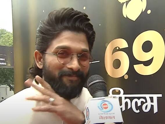 National Film Awards 2023: 69 व्या राष्ट्रीय चित्रपट पुरस्कार सोहळ्याला (National Film Awards 2023) सुरुवात झाली आहे. नवी दिल्ली येथील विज्ञान भवन येथे राष्ट्रीय चित्रपट पुरस्कार सोहळा पार पडत आहे. राष्ट्रपती द्रौपदी मुर्मूंच्या (Droupadi Murmu) हस्ते राष्ट्रीय चित्रपट पुरस्कार प्रदान करण्यात येणार आहेत. सर्वोत्कृष्ट अभिनेता या कॅटेगिरीमधील राष्ट्रीय चित्रपट पुरस्कारावर अभिनेता अल्लू अर्जुननं (Allu Arjun) नाव कोरलं आहे. अल्लू अर्जुननं खास लूकमध्ये राष्ट्रीय चित्रपट पुरस्कार सोहळ्याच्या रेड कार्पेटवर एन्ट्री केली. त्यानं रेड कार्पेटवर माध्यमांसोबत संवाद साधताना आनंद व्यक्त केला आहे.