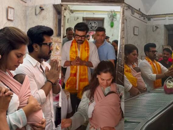 Ram Charan: दाक्षिणात्य चित्रपटात अभिनेता राम चरणचा (Ram Charan) चाहता वर्ग मोठा आहे. राम चरणच्या घरी काही महिन्यापूर्वी गोंडस मुलीचे आगमन झाले. राम चरण आणि त्याची पत्नी उपासना यांनी त्यांच्या मुलीते नाव कालिन कार कोनिडेला असं ठेवले आहे. राम चरण हा नुकताच त्याच्या पत्नी आणि मुलीसोबत मुंबईमधील महालक्ष्मी मंदिरात पोहोचला. मंदिरातील राम, उपासना आणि कालिन यांचे काही फोटो सोशल मीडियावर व्हायरल झाले आहेत.