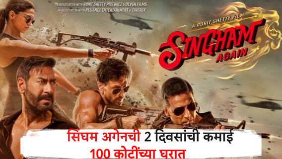 दरम्यान, सिंघम अगेन या चित्रपटानं पहिल्या दिवशी भारतात 43.50 कोटींचा गल्ला केला. तर दुसऱ्या दिवशी या चित्रपटानं 41.50 कोटी रुपयांचा गल्ला केल्याचं सैकनिल्कच्या ताज्या अहवालानुसार समजते. या अहवालानुसार, दोन दिवसात जगभरात हा सिनेमा पाहिला गेला आहे. त्यामुळे या सिनेमाचा गल्ला 100 कोटींच्या वर गेल्याचे सांगण्यात येत आहे. सोमवारपर्यंत हा आकडा 200 कोटींच्या घरात जाण्याची शक्यता वर्तवण्यात येत आहे.