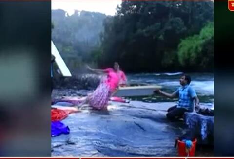 धबधब्याजवळ निसरड्या दगडांवर शूटिंग सुरु असताना एक तरुणी पडल्याचं या व्हायरल व्हिडिओमध्ये दिसत आहे.