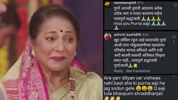 मराठी चित्रपटसृष्टीत आपल्या अभिनयाचा वेगळा ठसा उमटवणाऱ्या प्रगल्भ कलाकारांमध्ये ज्योती चांदेकर यांचं नाव आवर्जून घेतलं जातं. त्यांनी साकारलेली मी सिंधुताई सपकाळ या सिनेमातील सिंधुताईंची भूमिका चांगलीच गाजली. अनेक मालिका नाटक आणि सिनेमांमध्ये वेगवेगळ्या प्रकारच्या भूमिका त्यांनी साकारल्या. दरम्यान ठरलं तर मग मालिकेतील चाहत्यांची लाडकी पूर्ण आजी आता जगात नाहीये यावर चाहत्यांचा विश्वास बसत नसल्याचं अनेकांनी सोशल मीडिया अकाउंटवर कमेंट करत म्हटलंय. स्टार प्रवाहने त्यांच्या सोशल मीडिया अकाउंट वर एक पोस्ट करत ज्योती चांदेकरांना श्रद्धांजली वाहिली .या पोस्ट खाली अनेक चाहत्यांनी 'पूर्णा आजीला ' श्रद्धांजली वाहिलीये .अनेकांनी आपल्या भावना या पोस्टवर व्यक्त केल्यात .अनेकांनी या घटनेवर विश्वास बसत नसल्याचं म्हटलं . 'महासंगममधील परवाच्या भागात त्यांच्या तोंडून श्रीकृष्णाची महती ऐकून छान वाटलं होतं .खूप सुंदर बोलल्या होत्या' .असं आहे एका नेटकऱ्यानं म्हटलं . कालचा एपिसोड मध्ये किती छान दिसत होत्या, हे फारच शॉकिंग आहे .. अशा कमेंट्स मधून चाहत्यांनी त्यांच्या भावना व्यक्त केल्यात .